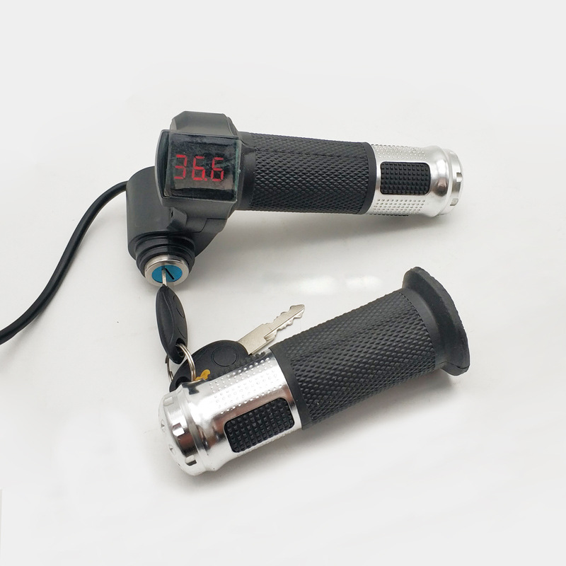 12V-96V Ebike Twist Throttle With Handle for Electric Bike Throttle With LCD Display Indicator Gas Handle Throttle Lock Key