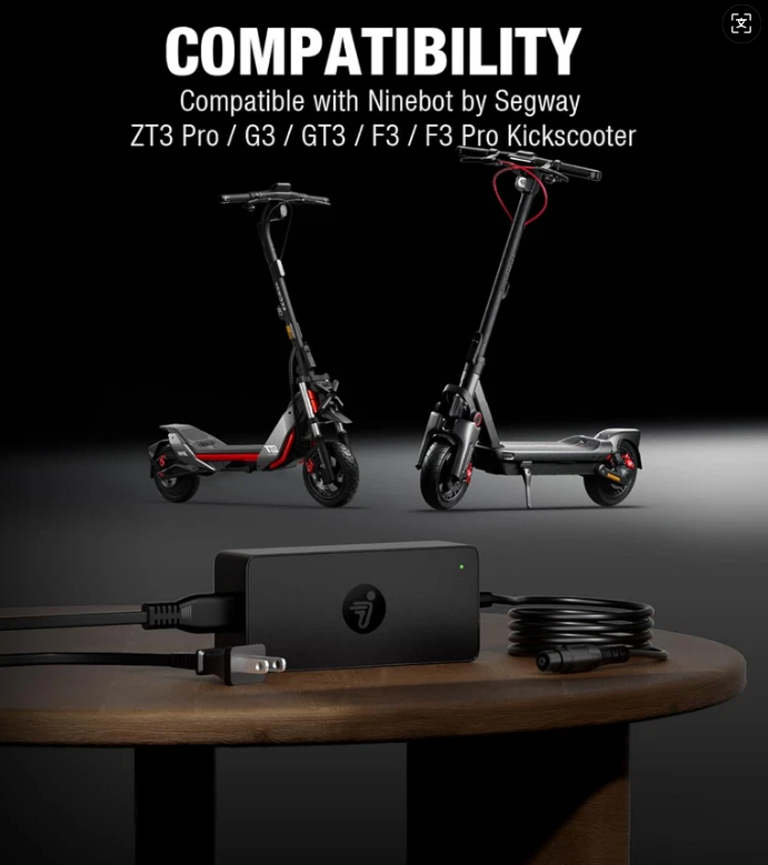 This charger adapter perfectly fits the needs of several Segway Ninebot models, making it an ideal solution for those seeking a universal and efficient charging accessory. Designed with industry-standard specifications, it delivers high efficiency and stable power to your electric scooters, ensuring optimal performance and long-term battery health. Its compatibility with premium models like ZT3 Pro, MAX G3, F3, GT3, and F3 Pro makes it an essential accessory for owners who value performance and dependability.